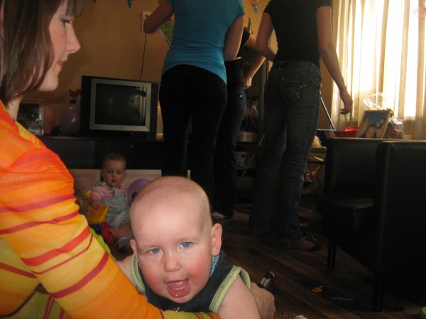 Сначала взгляд падает на Вовины очаровательные глаза, а потом плавно переходит на попы тёть)))