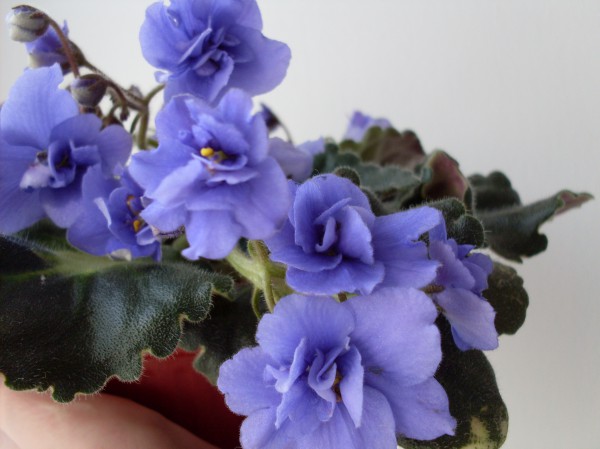 очень компактная розетка, обильное цветение махровыми и полумахровыми цветами на динных цветоносах. Цвет тоже очень интересный, какой-то: фиолетово-сиреневый с оттенком голубизны, в хорошем смысле этого слова D))) |