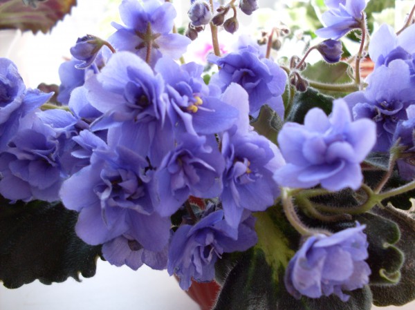 очень компактная розетка, обильное цветение махровыми и полумахровыми цветами на динных цветоносах. Цвет тоже очень интересный, какой-то: фиолетово-сиреневый с оттенком голубизны, в хорошем смысле этого слова D))) |