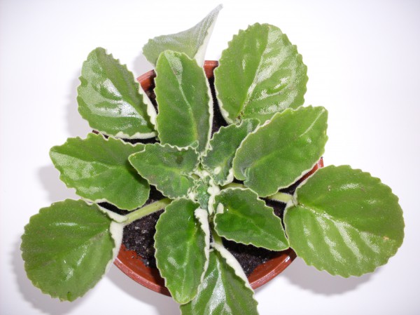 очень интересная листва: изумрудные лодочки, бархатные с обеих сторон, волнистые по краю, изнанка серебряная.