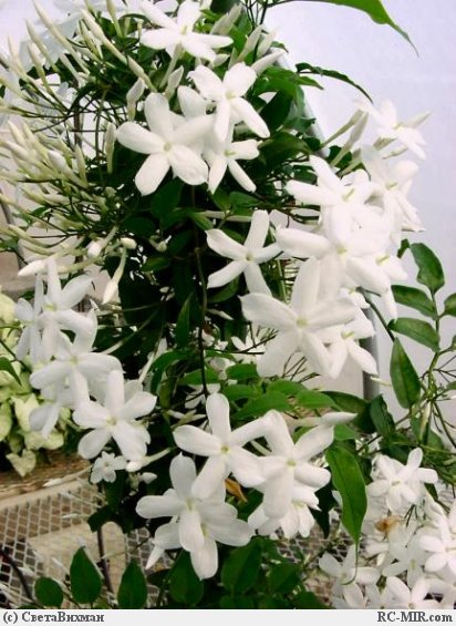В комнатном цветоводстве распространен не основной вид, а садовая форма жасмина аравийского с махровыми цветками. Цветет с весны до поздней осени.