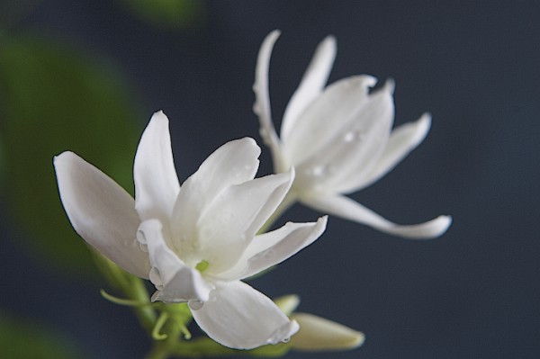 Многие любители для ароматизации чая добавляют туда лепестки цветков комнатного жасмина. Они представляют собой небольшие белые звездочки, собранные по 5-6 штук в малоцветковые кисти.