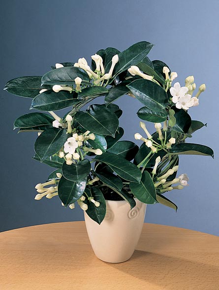 | Комнатный жасмин по своим ботаническим характеристикам не имеет ничего общего с жасмином садовым-чубушником. Объединяет их только аромат цветков.