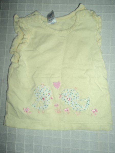 На этикетке указан рост 56-62 см, возраст 0-3 мес. Длина от плеча до низа - 27см, ширина под руками 47 см. Материал - трикотаж, 100% хлопок. Состояние идеальное. Цена 170 руб.