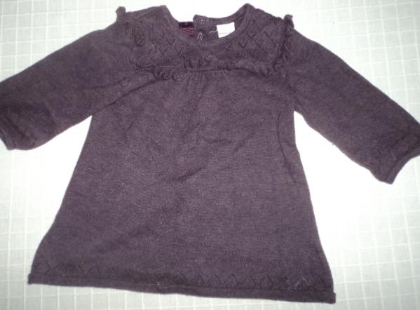 Туника темно фиолетовая: длина от плеча до низа 41 см, ширина под рукавами - 54 см, указан рост 74 см. Цена - 230 руб.