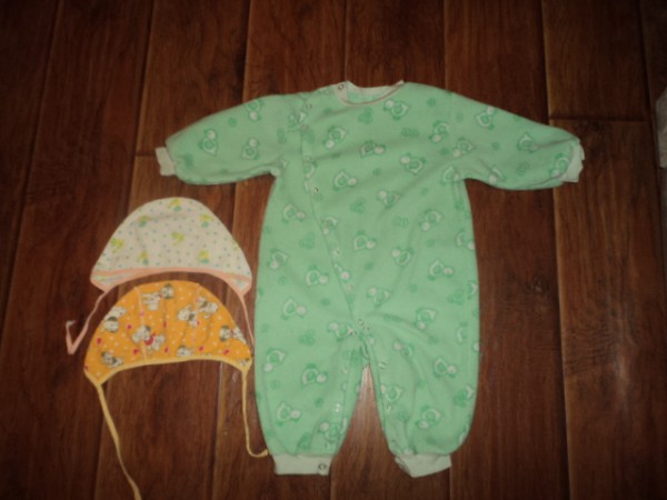 | зеленый флисовый слипик носили примерно до 76см, состояние хорошее - 300р. При обмене цена немного выше будет. Чепчики байка по 10р или подарок при покупке. |