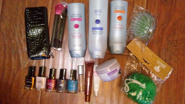 Лаки 140, шампунь-150, массажер -100, мочалка-40р, ополаскиватель-90р, кисти-200, крем д/лица с эффектом загара - 180р, крем вокруг глаз - 100р, маска для волос - 120р