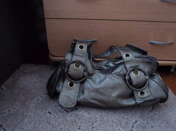 серая сумка, мягкая. внутри единое пространство. есть карман для сотового и карман на молнии, как внешний так и внутренний. сумка ОЧЕНЬ вместительная. состояние больше, чем хорошее.