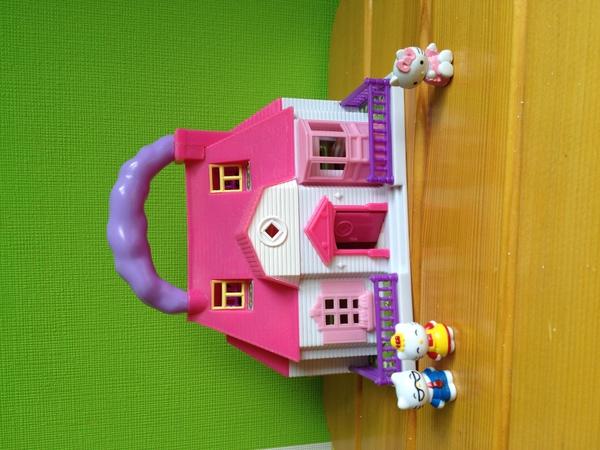 игрушечный раскладной домик Китти (Hello Kitty) с двумя фигурками Китти, из мебели кровать и умывальник с зеркалом,