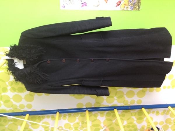 пальто демисезонное женское черное фирмы motivi (Италия), 80% шерсть, размер 44, прямой покрой, оригинальный отстегивающийся воротник из иск.меха,