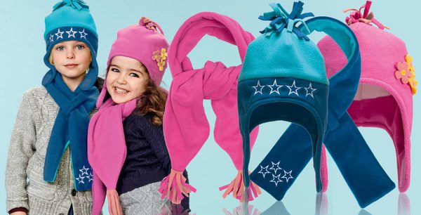 Тепло и уютно в холодную погоду! Двухцветная шапка из мягкого плотного флиса украшена помпоном и вышитыми белыми звездочками. Застегивается на липучку.