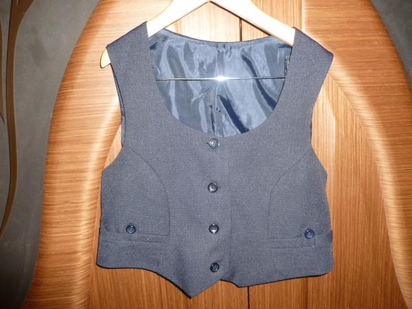 | Жилетка для школы. Примерно на 3-5 класс. Размер не указан. Все замеры сделаю по запросу. Ткань очень хорошая. Фото со вспышкой и без вспышки. В реальности она чёрная, на фотографиях получился цвет светлее. Состояние новой вещи. |