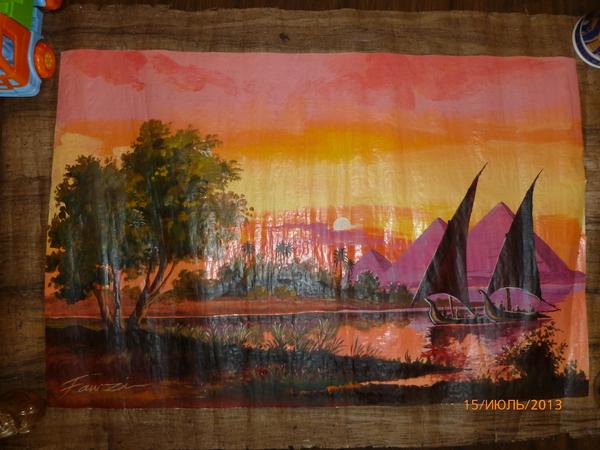 Папирус привезен из Египта. Размер 61*89 см. Новый, еще не оформлен в рамку.