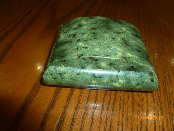 Шкатулка из змеевика 9.5*7.5 см. На крышке есть небольшой скол.