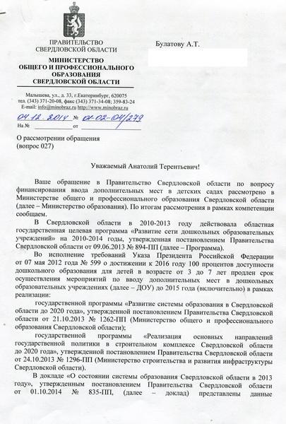 Фотоальбом "Ответы чиновников по детсадам за 2014 год."