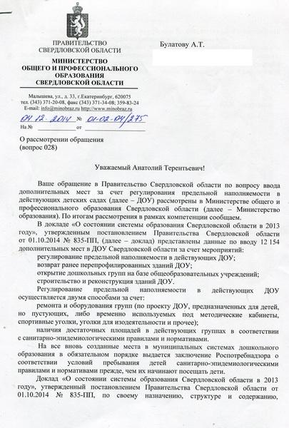 Фотоальбом "Ответы чиновников по детсадам за 2014 год."