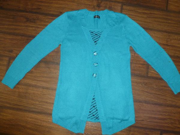 Состав: 50 % хлопок, 38 % шерсть, 12 % акрил. Фирма IRINA PAN. Выменяла на этом же сайте, но мне не подошёл размер. Кофта 46-48 размер в хорошем состоянии, подойдёт на беременный животик. Мягкая, приятная к телу.