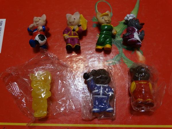 нужен мишка в красном, хрюша с мячом.