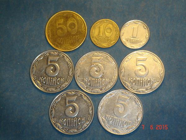 Украина: 50 коп. 1992 г. 10 коп. 1992 г. 5 коп. 1992, 03, 03, 04, 05 гг. 1 коп. 1997 г.