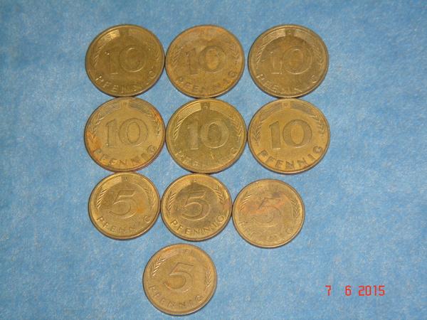 Германия: 10 пфеннигов 1950, 76, 91, 92, 96 гг. 5 пфеннигов 1979, 82, 83, 93 гг.
