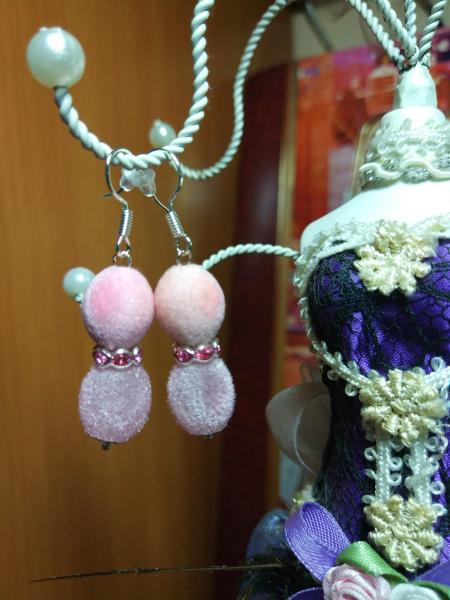 Выполнено из качественных Европейских материалов. Бусины бархатные матовые и прозрачные, цвет очень нежный. Можно сделать с серебряными ушками.