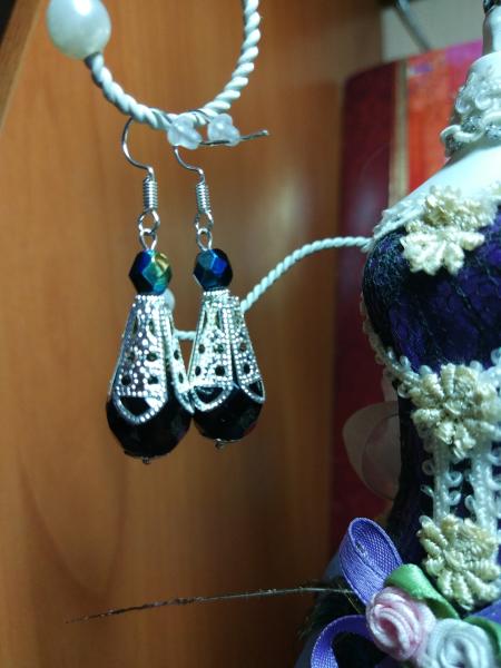 Выполнено из качественных Европейских материалов. Бусины синие с отливом. Можно сделать с серебряными ушками.