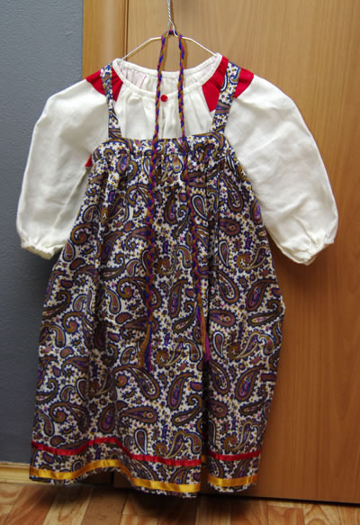 Сшито на заказ, полностью повторяет традиционный русский народный костюм. |