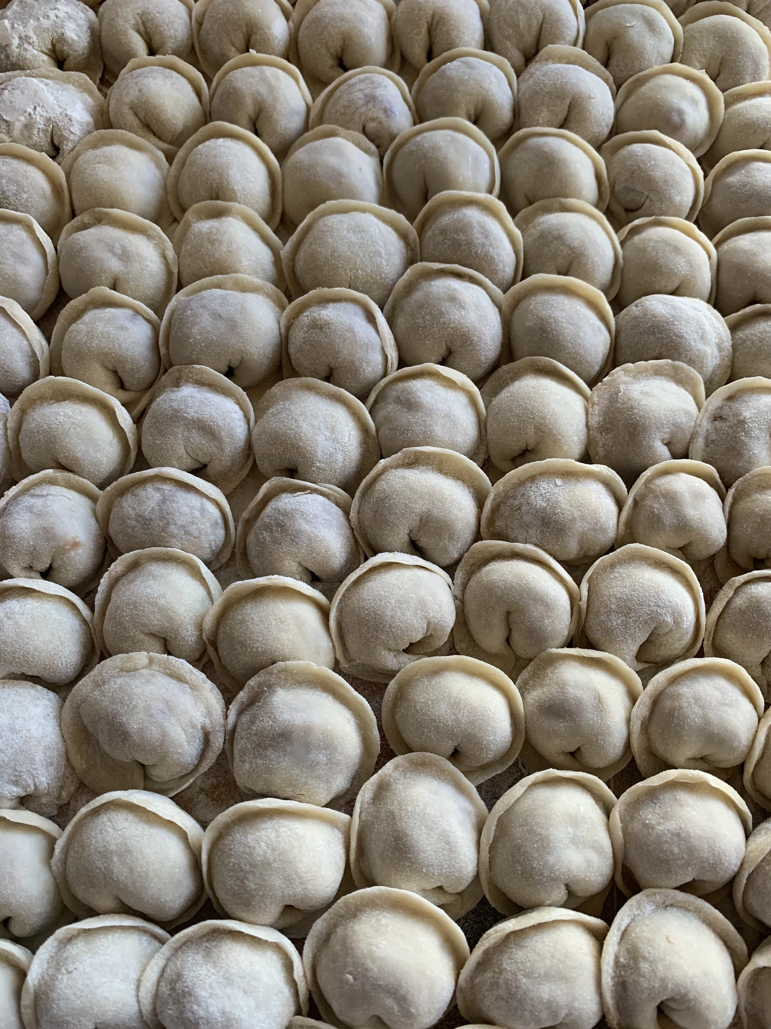 Вчера пельмени лепили, соответсвенно ужин был такой же. С домашними соленьями.