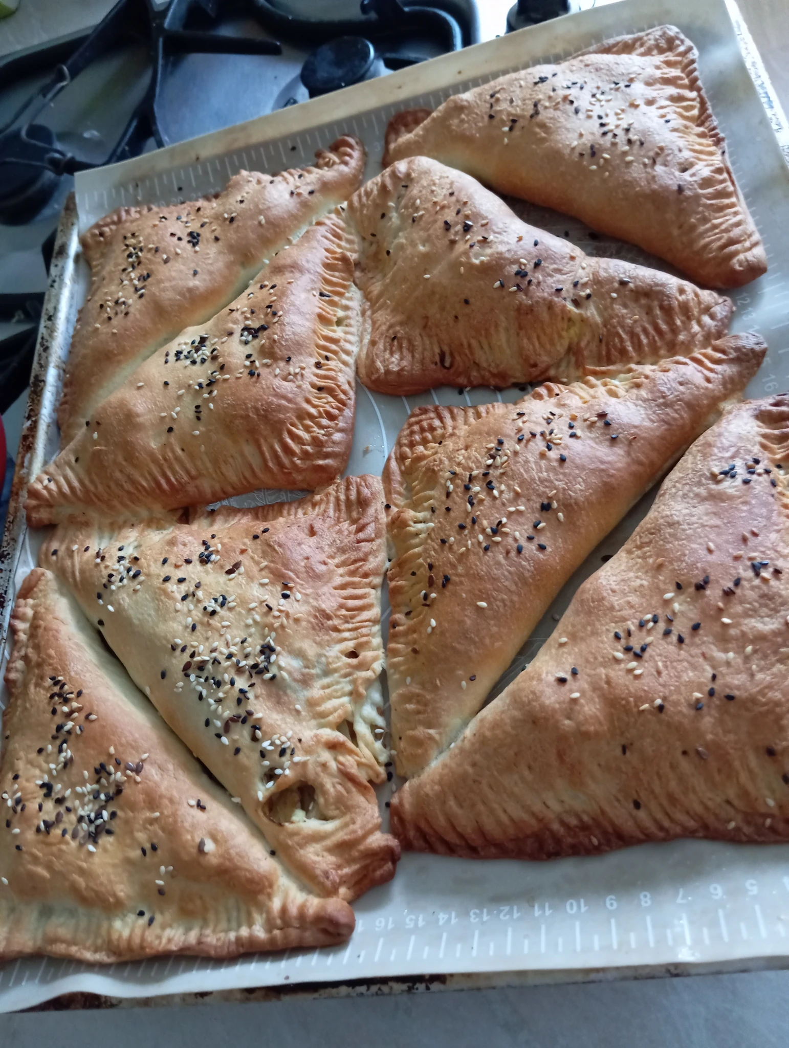 Дала первый раз расстояться слоеному тесту, какие лапти получились.