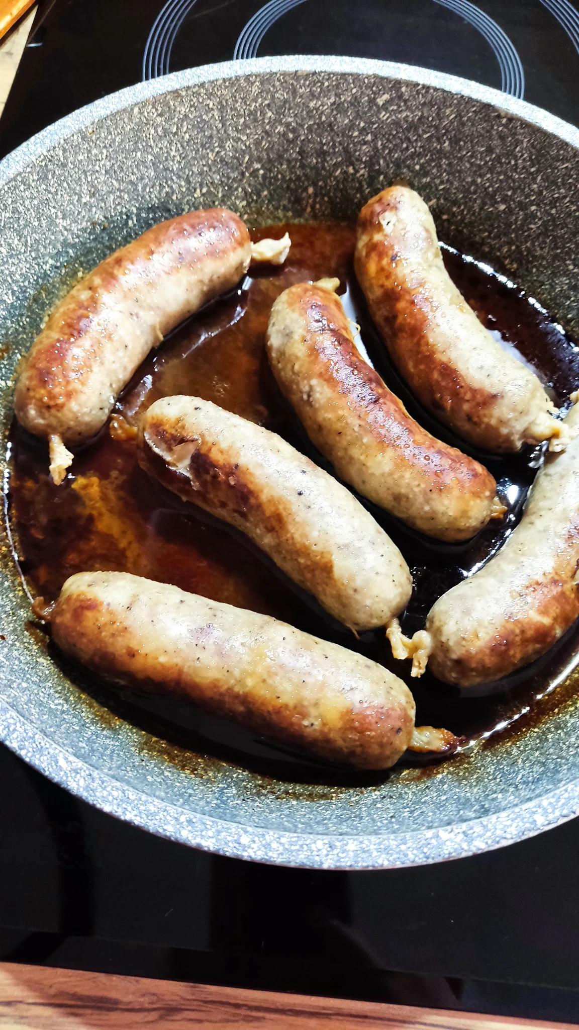 Сегодня приготовила спагетти из кабачка с фаршем и купаты пожарила, к ним будет гороховая каша