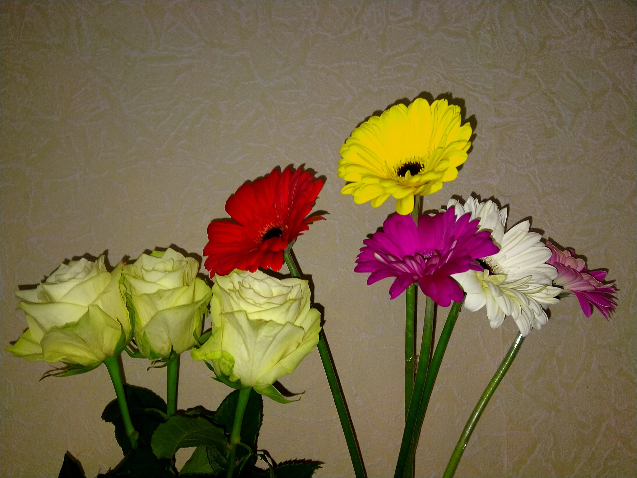 Сегодня очень много всего. Основные салаты: с краб палками и греческий. Горячее двух видов: стерлядь под морковью и говядина с черносливом. К чаю домашний шоколадный торт ( на вид конечно не ахти, но сыновьям на ура заходит. Ну а цветы эти все мне... двадцать лет назад я первый раз стала мамой. И моему мальчику сегодня 20