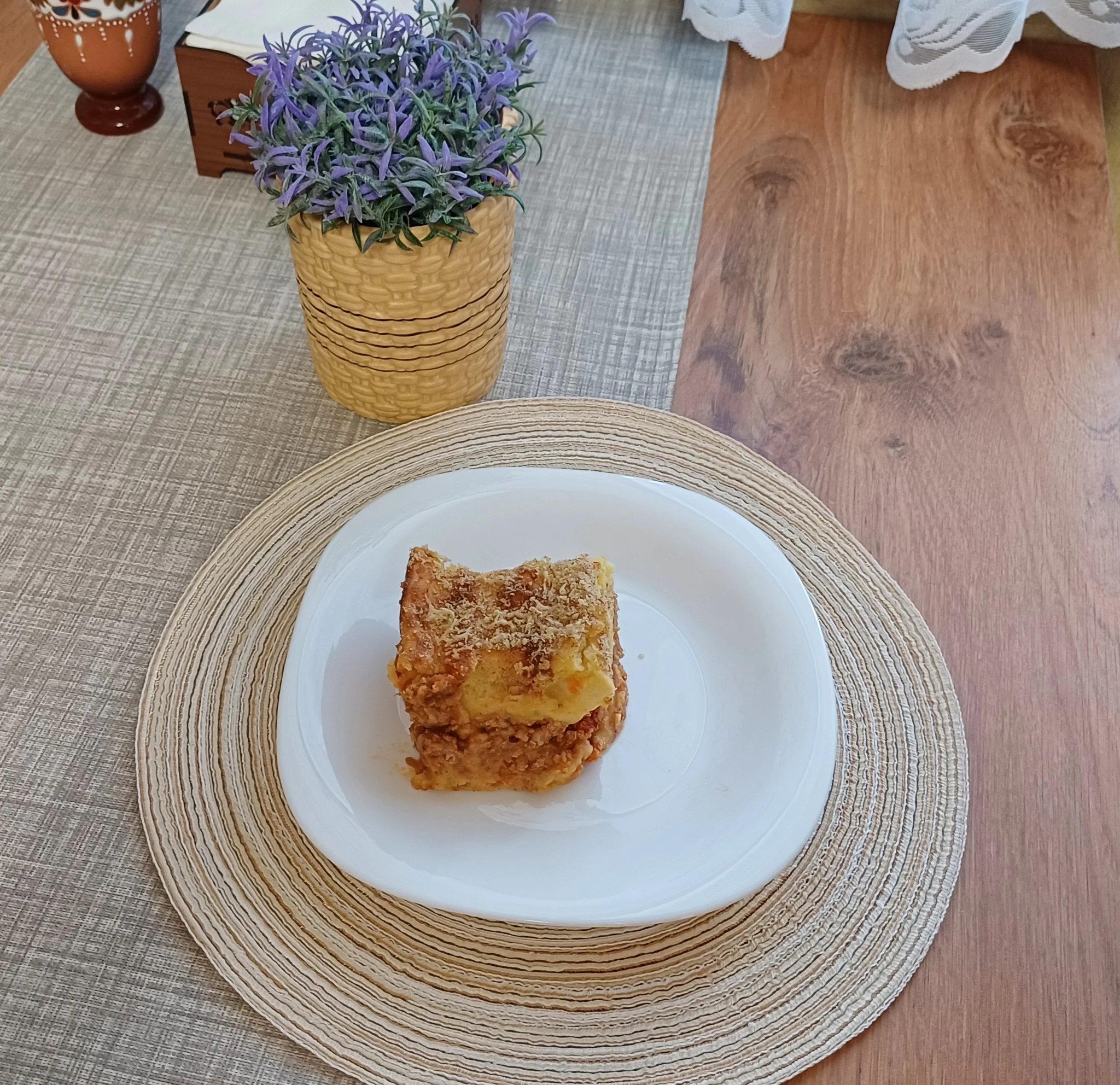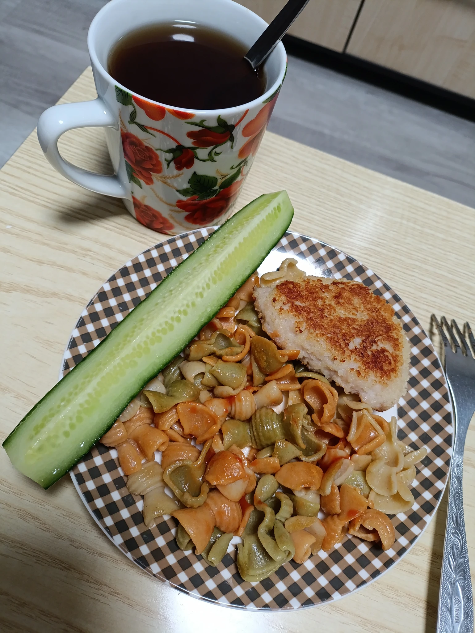Макароны с котлетой и блины с ветчиной и сыром. И диванная тарелка под киношку