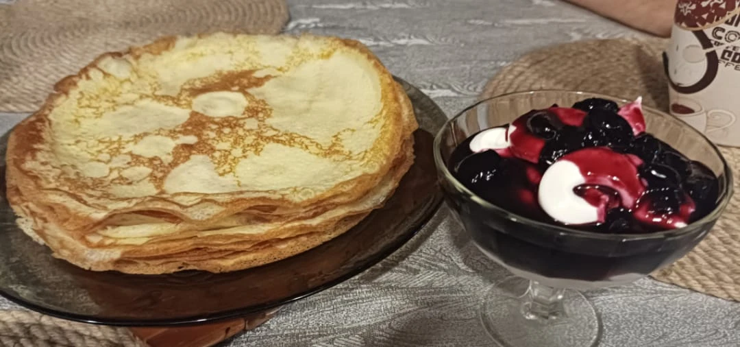 Блины со сметаной и вареньем из жимолости
