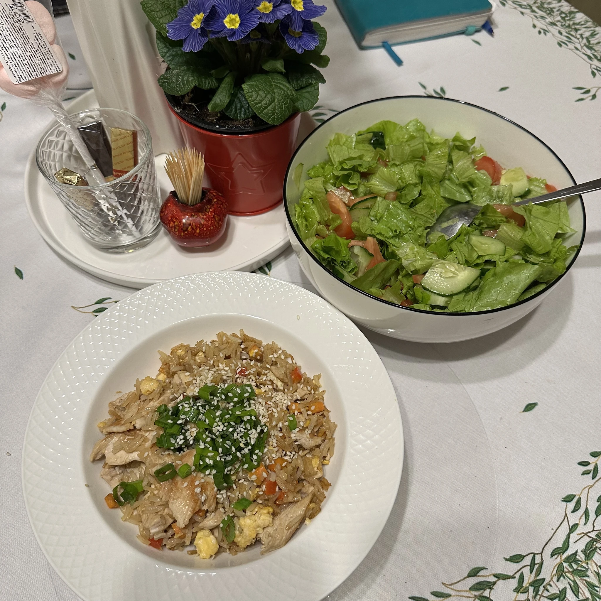 Сегодня жареный рис в тайском стиле и салат.