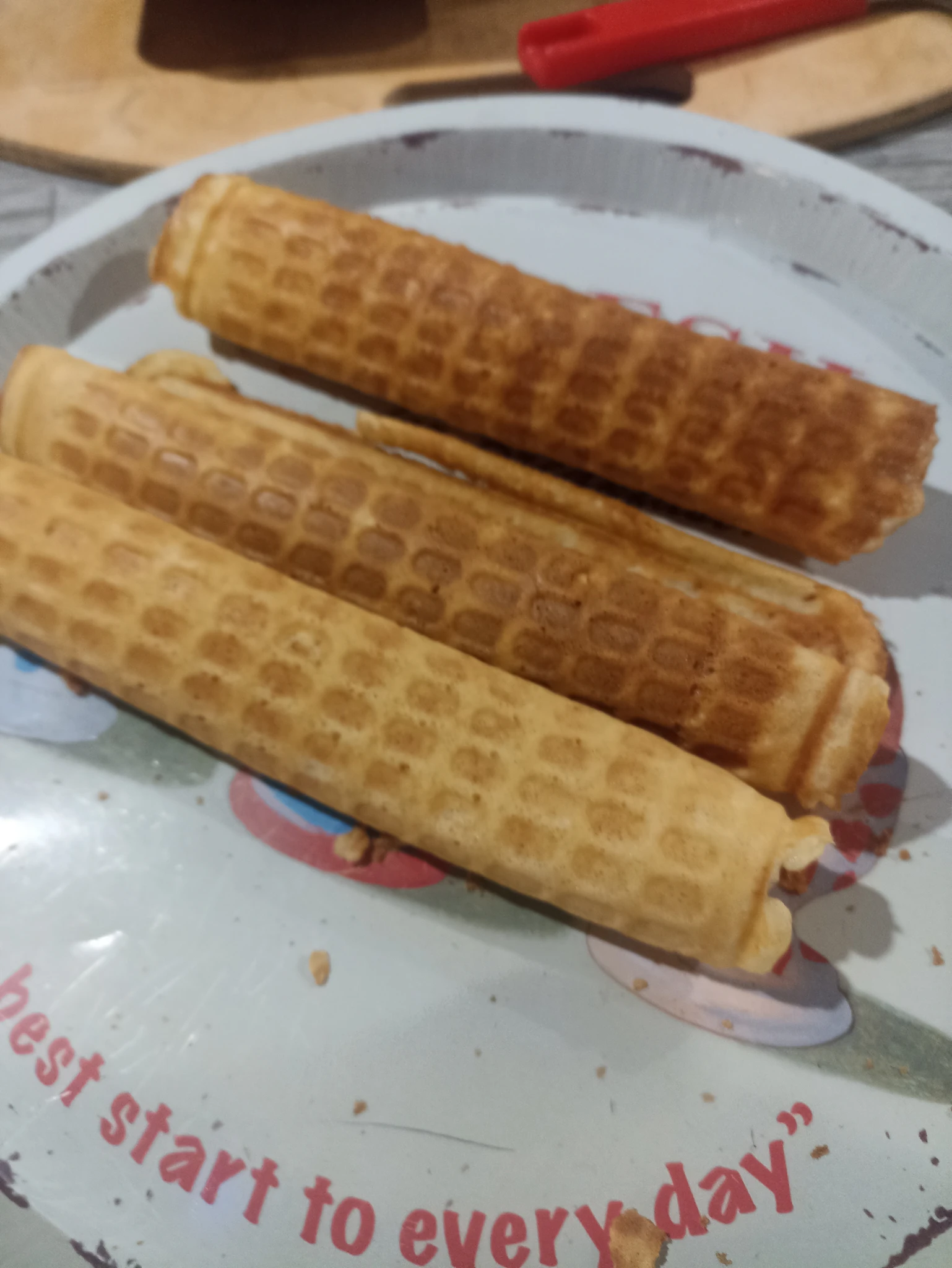 Мне мама привезла вафельницу, на которой нам в детстве вафли пекла. Ну что ж, в моей семье напечь гору вафель невозможно