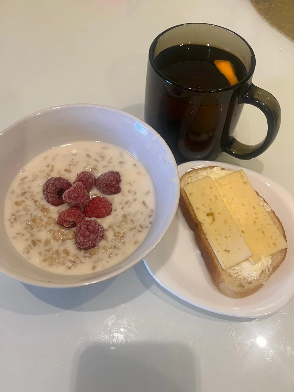 Доброе утро! Йогурт с гранолой и бутерброд.