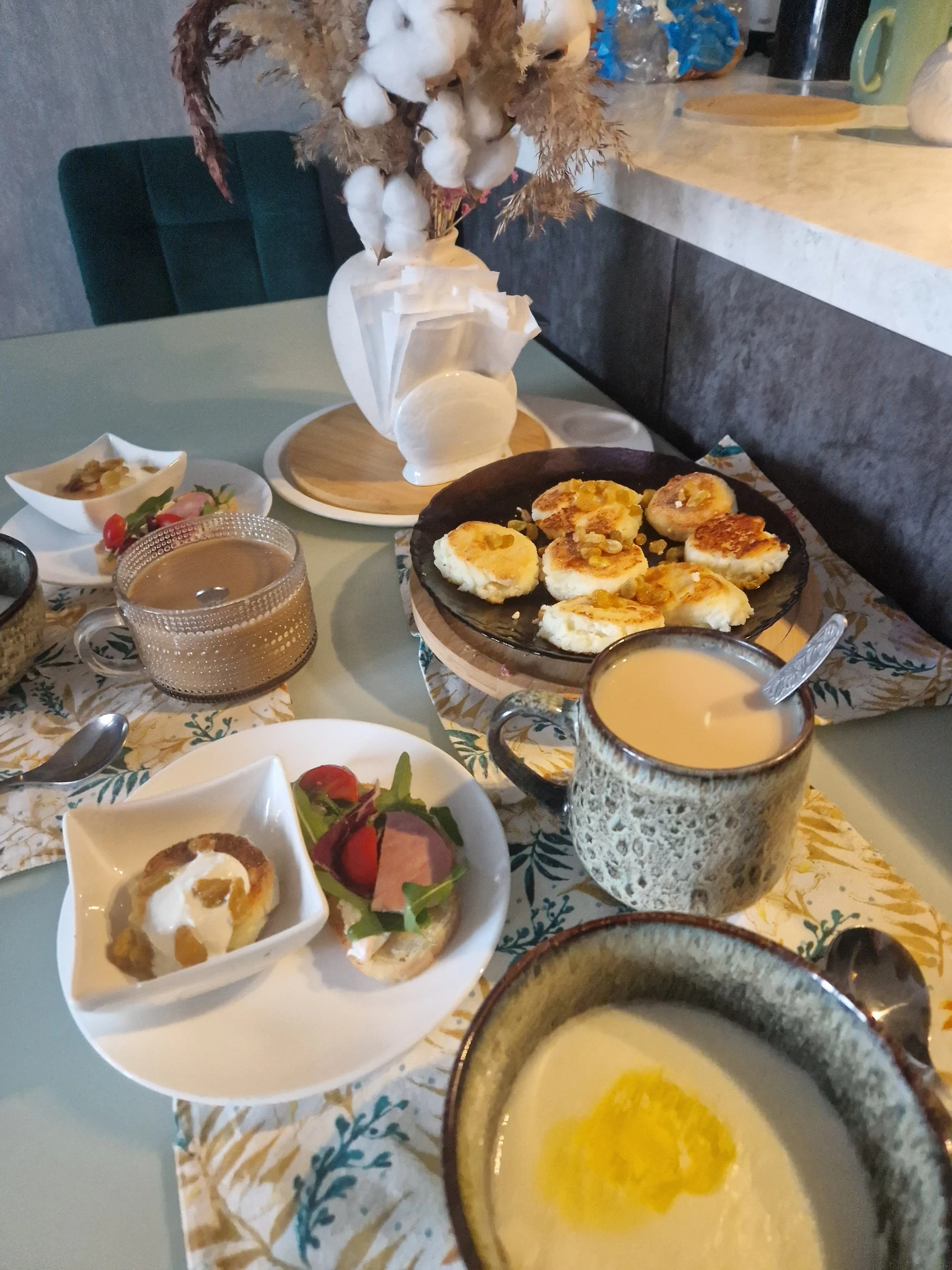 Завтрак четверга. Манная каша , сырники с изюмом, бутики