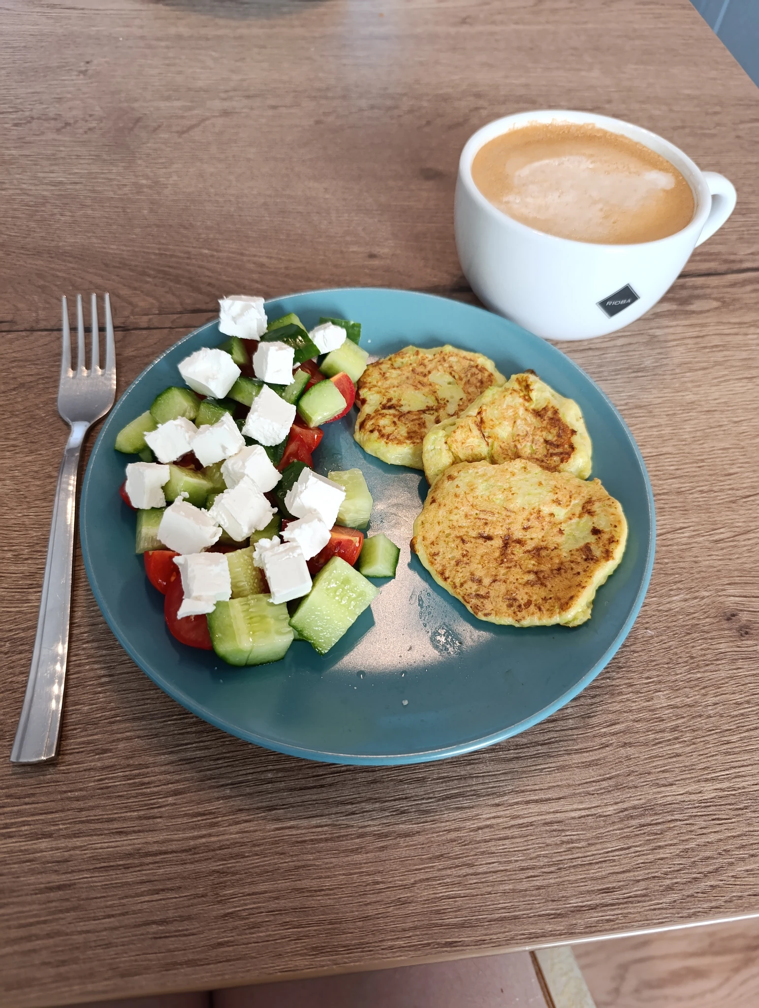 Делала мелкому оладьи из кабачка, и мне перепало. На десерт был бутерброд с маслом и мёдом, но его уже не фоткала, так сказать экспромт