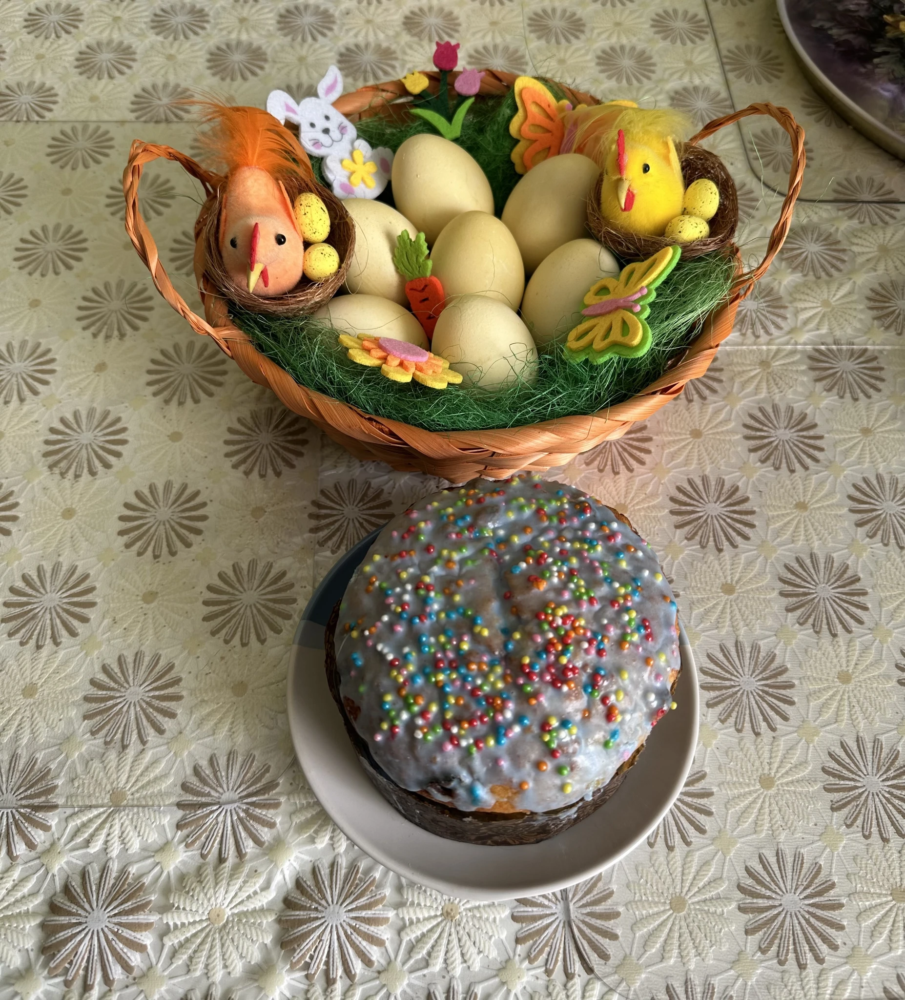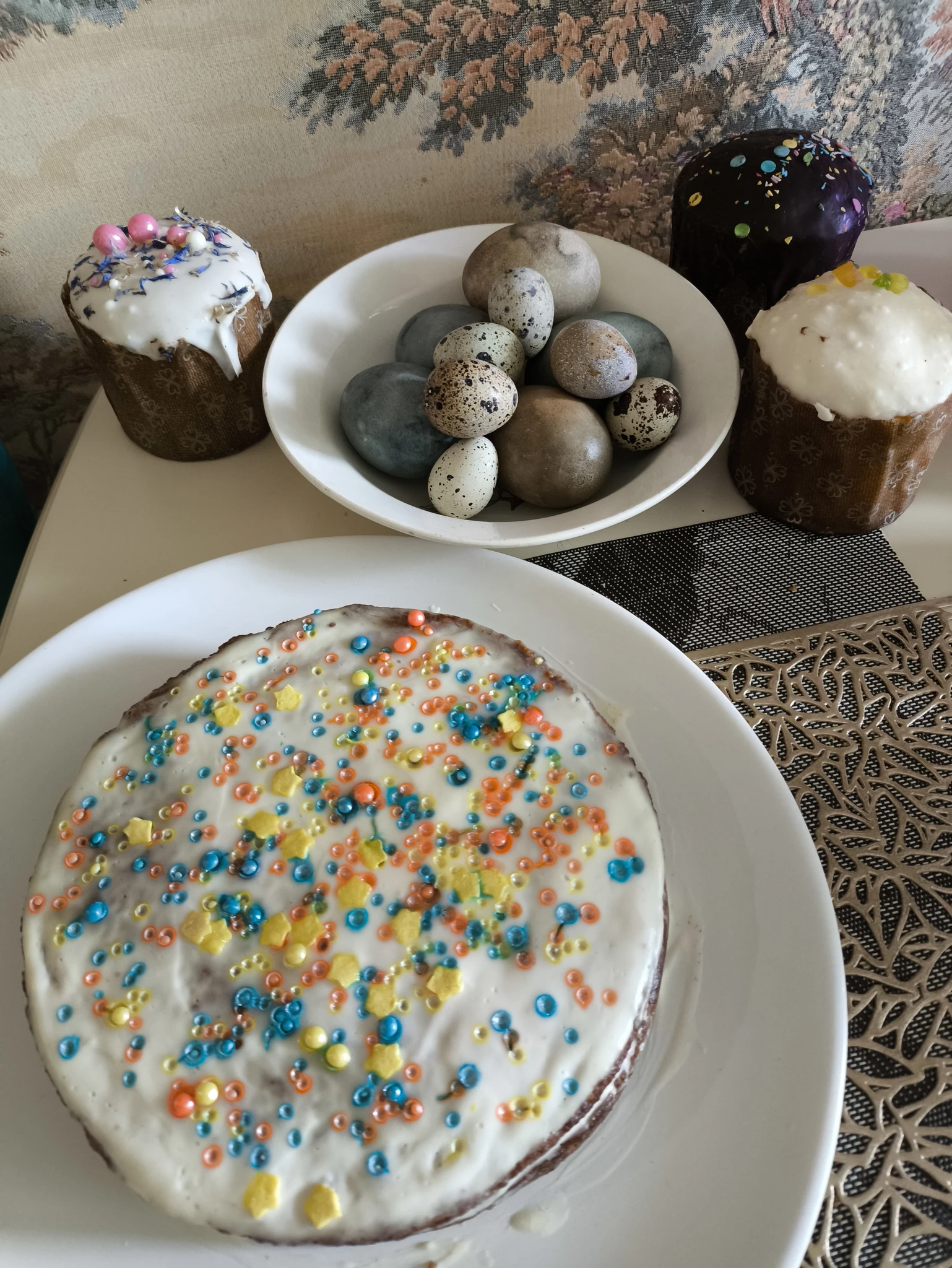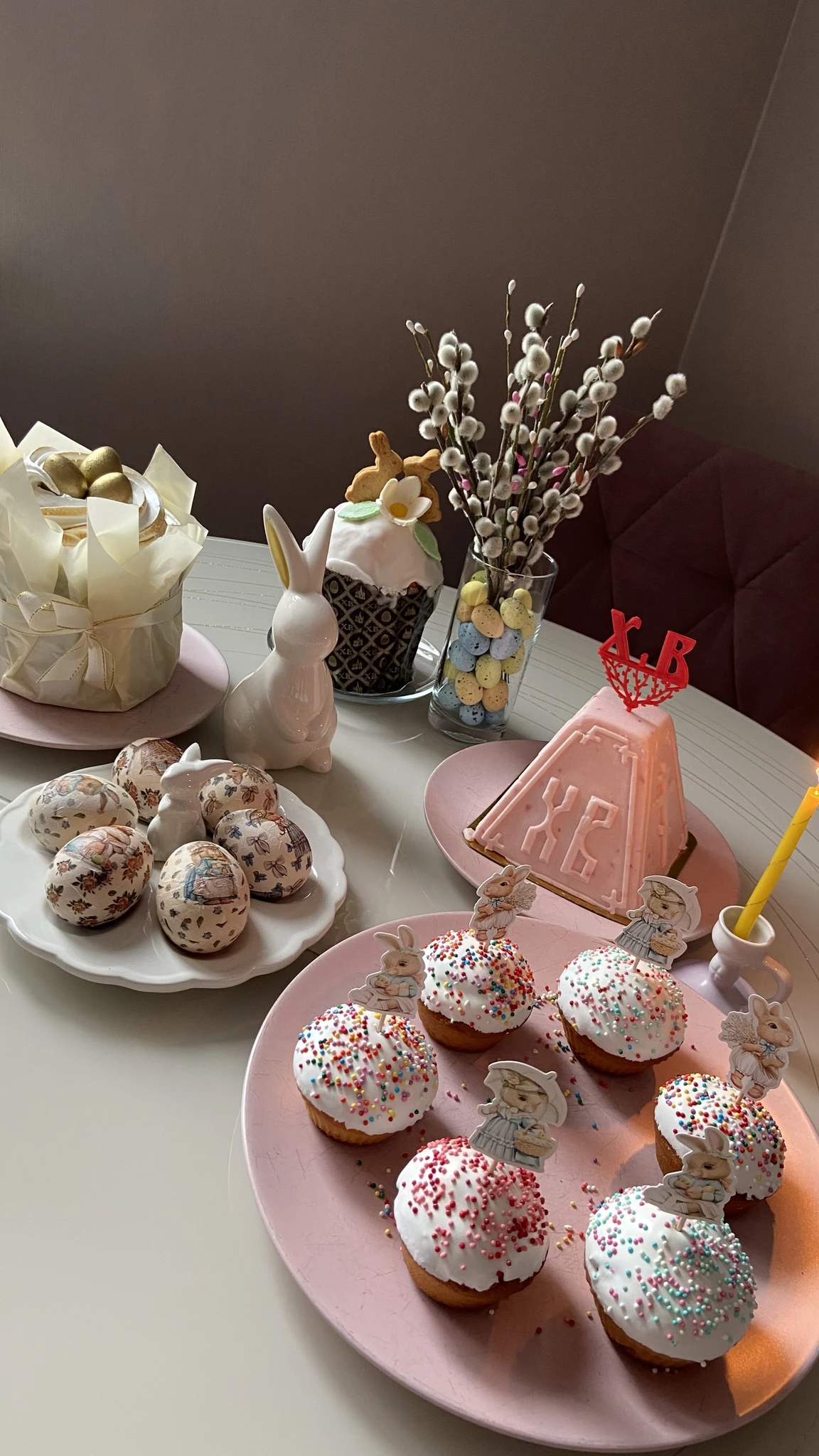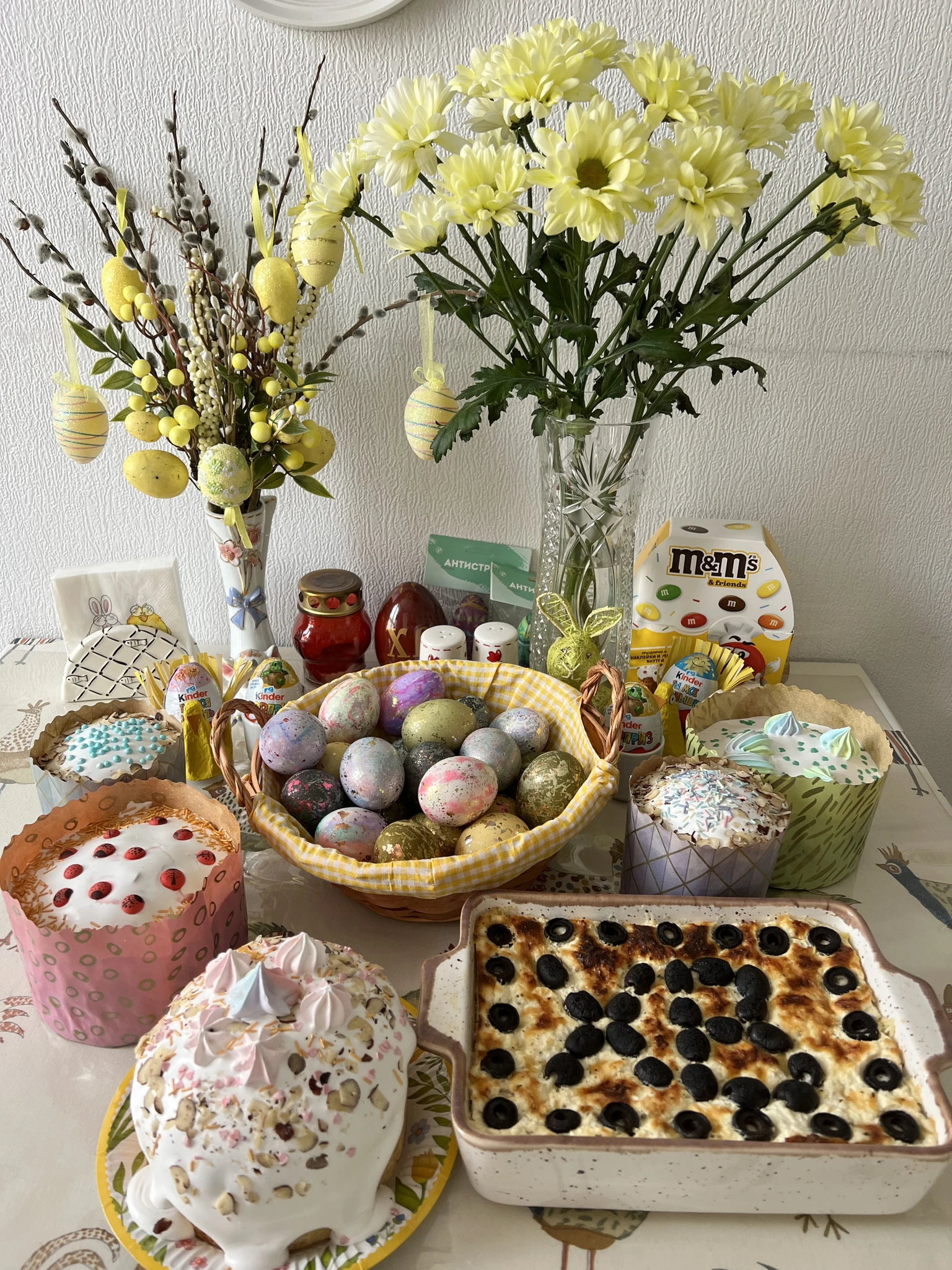 У меня скромно, кулич сама пекла впервые с жизни. Считаю подвиг)))