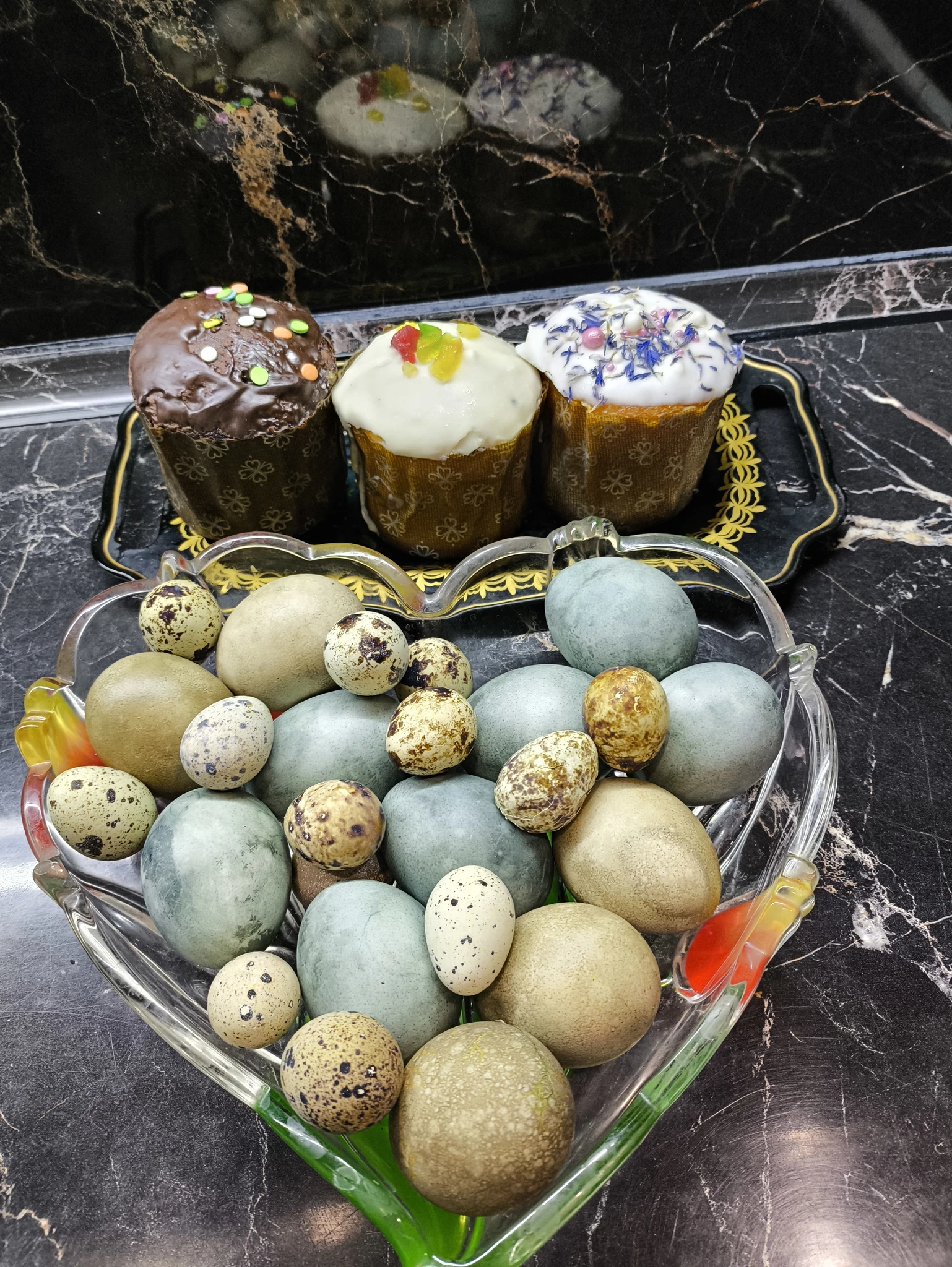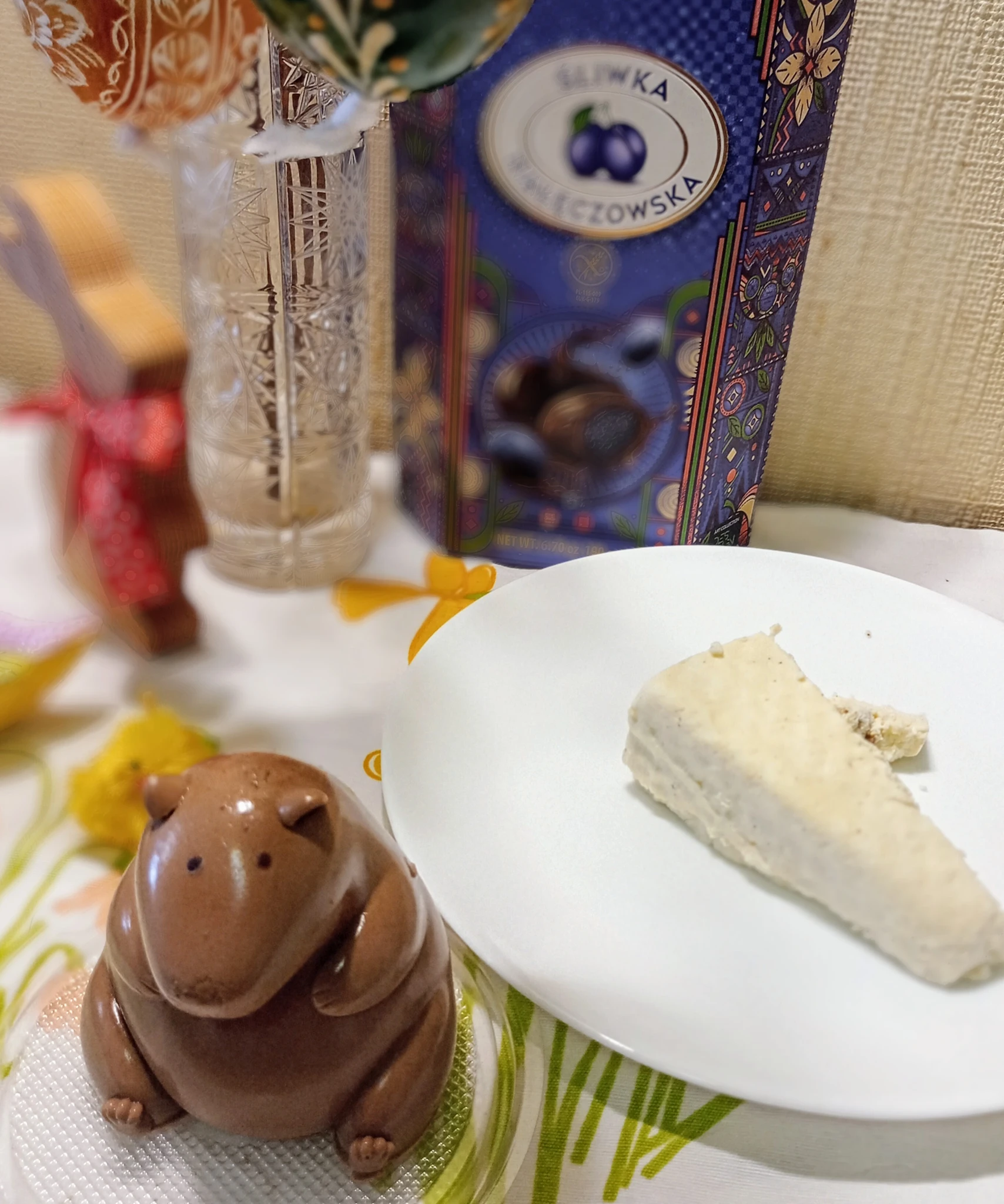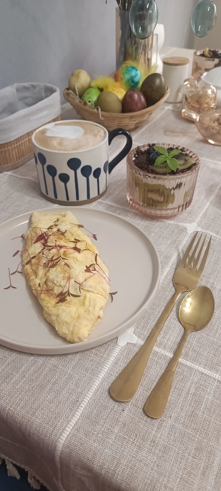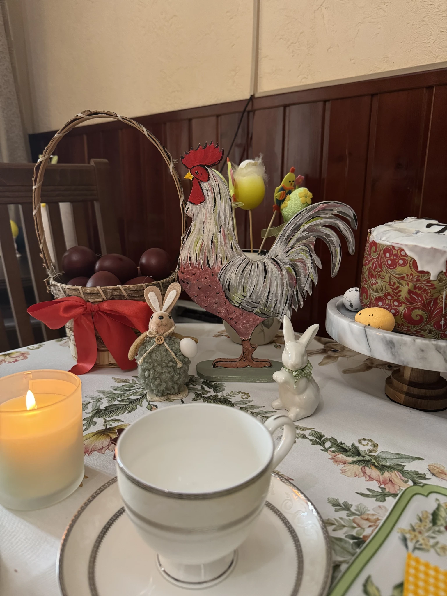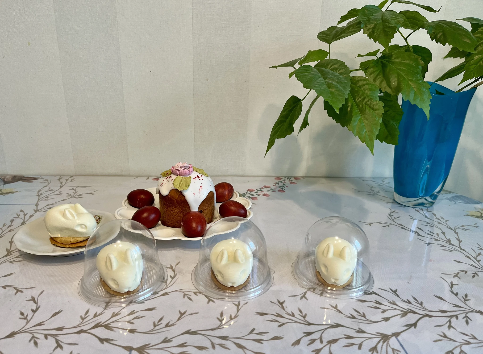 У меня скромно, кулич сама пекла впервые с жизни. Считаю подвиг)))