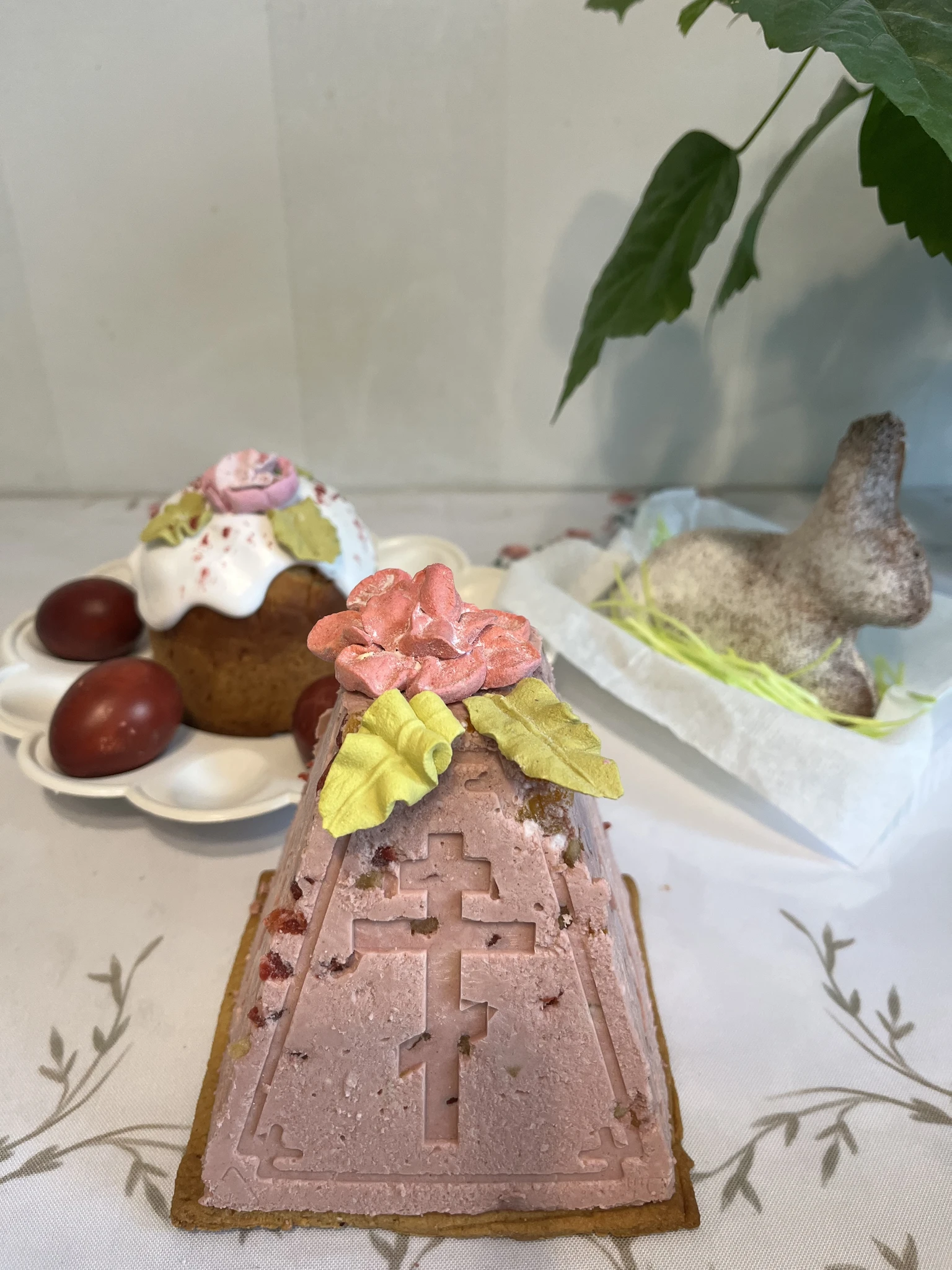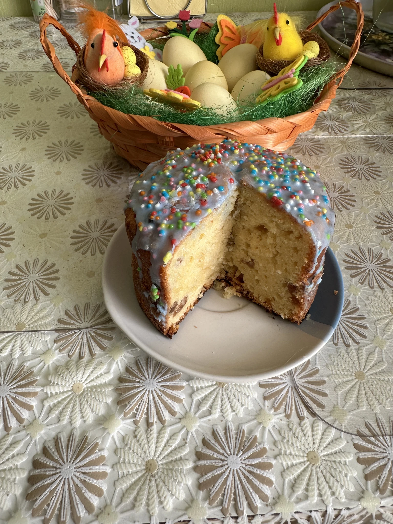 Мы сегодня по гостям, поэтому все мои куличи и Пасхи розданы. У меня совсем все простенько.
