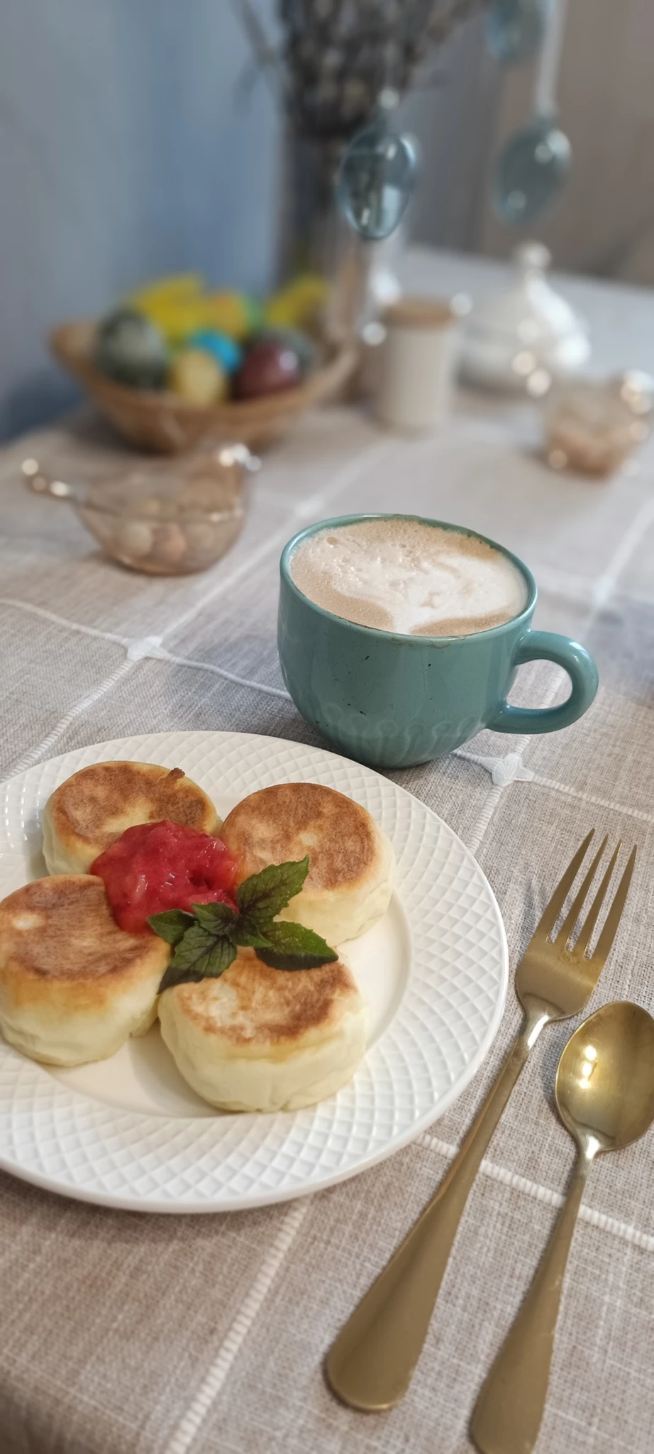 Доброго дня! Я вчера сфоткала и забыла выложить свой стол, вместо творожной пасхи готовлю несладкую запеканку.
