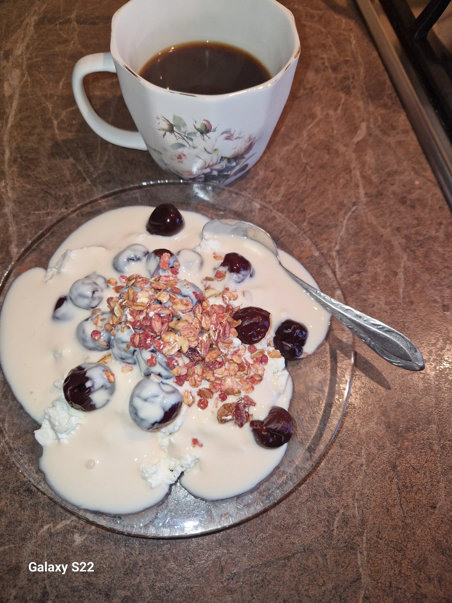 Доброе утро! Творог,вишня,ряженка,гранола