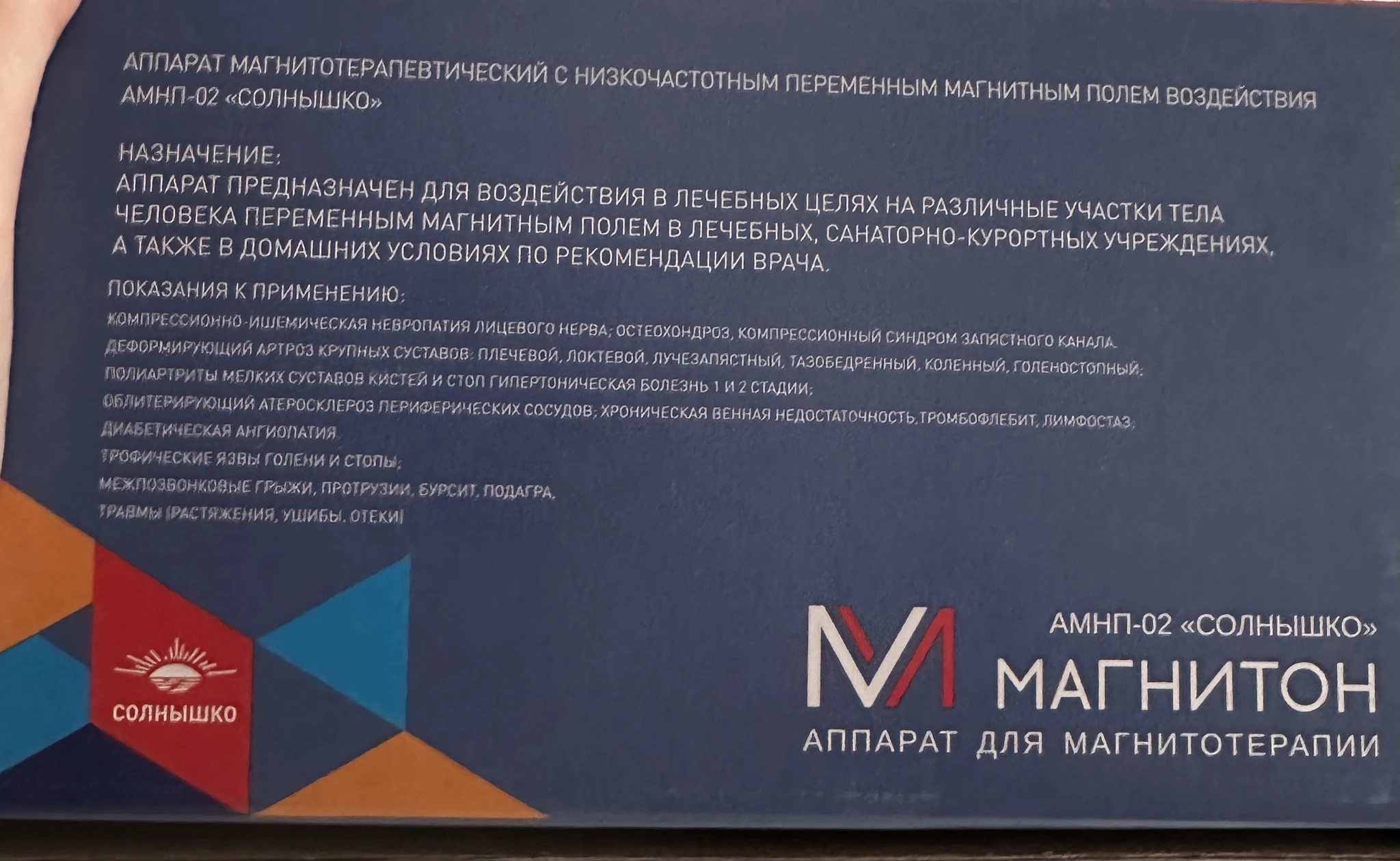 В больнице вот такой аппарат мне советовала физиотерапевт. Аппарат для магнитотерапии Полюс-2Д низкочастотный. Он стоит не конских денег, но помогает от болей, отеков, восстановлению связок. Но у меня уже куплен был другой, он раза в два дешевле (на фото).