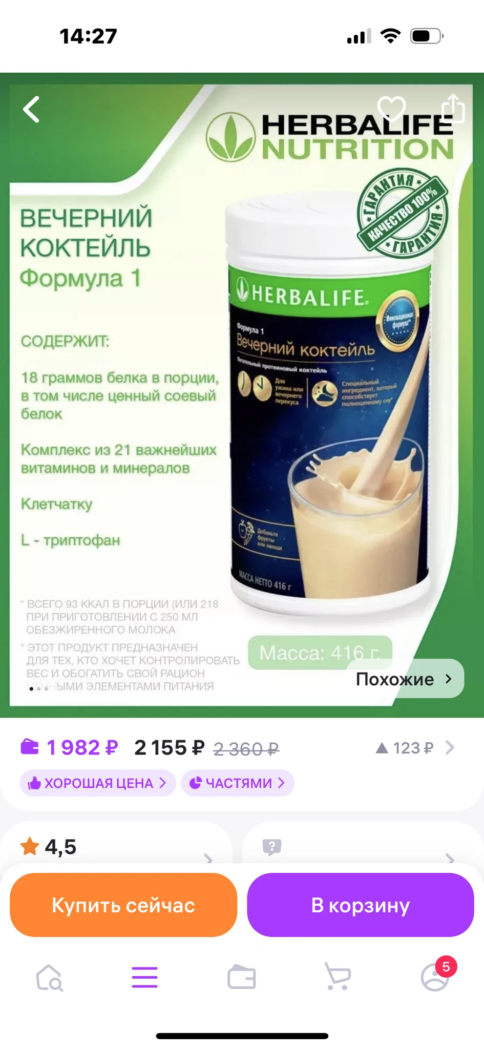 Нормальный у него состав, вполне удобно один приём пищи им замещать (ужин, например).