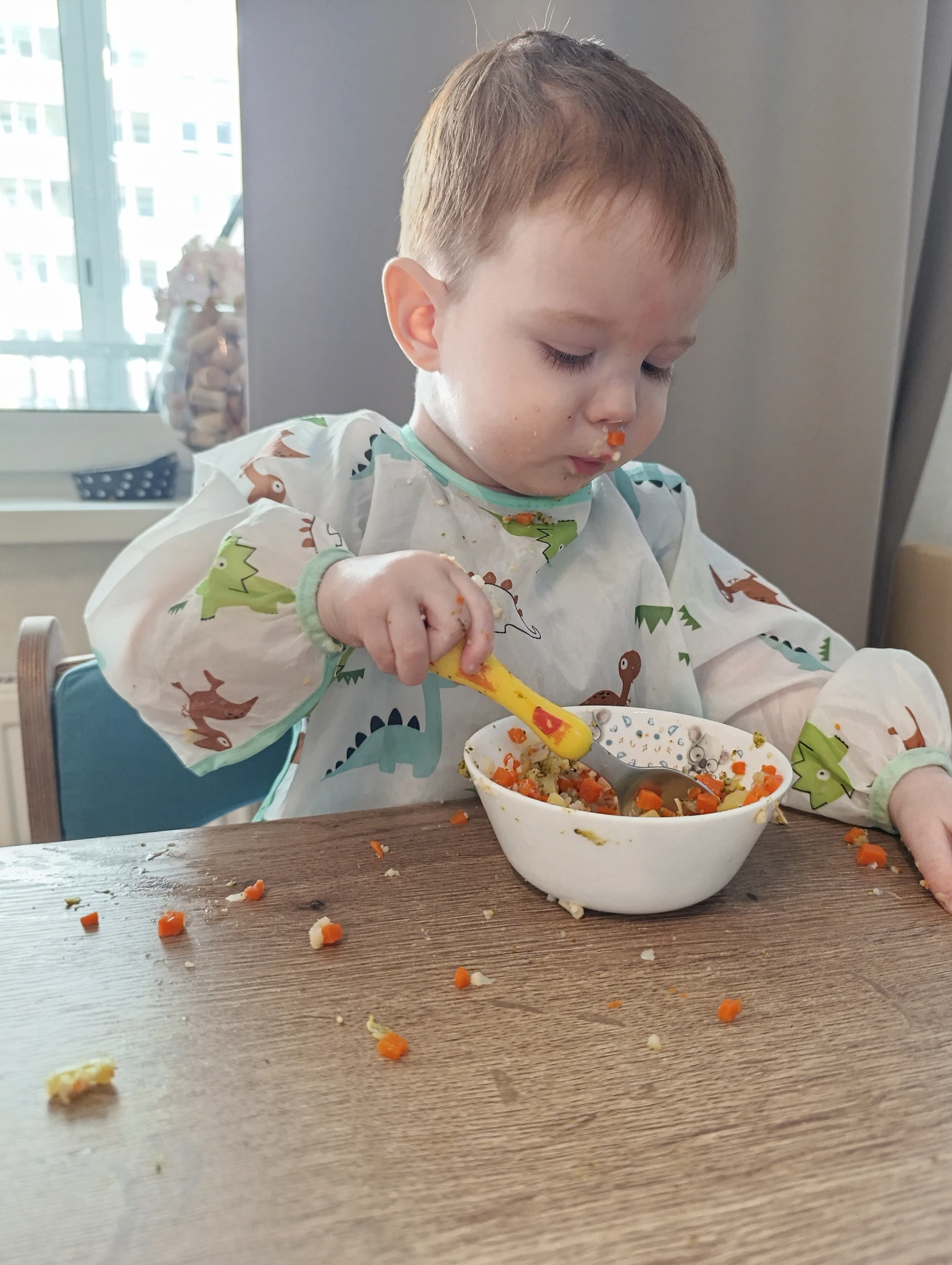 Пока он своей ложкой машет, Вы "под этот шумок" и накормите
