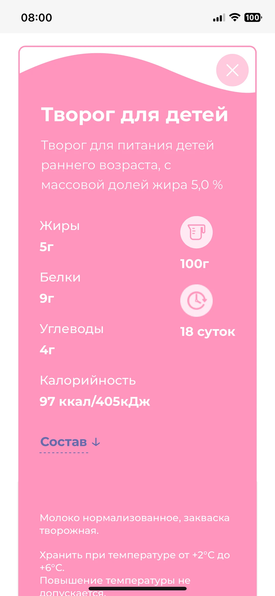 Там его низкий %, даю для расширения таблицы прикорма, Роберто очень любит чистый творог и икефир, кислое это его тема. Чистые фрукты, не очень Роберто любит, только яблоко, груша, банан ест немного.