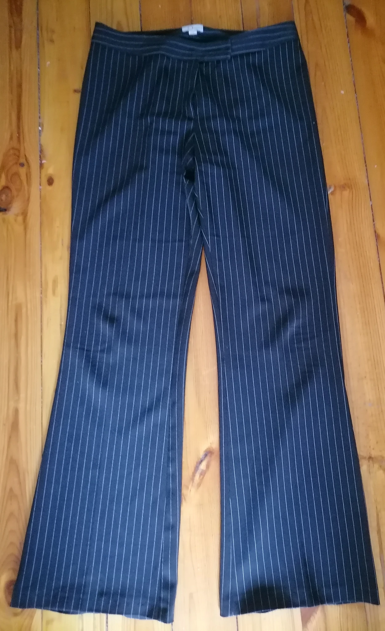 брюки чёрные в белую полоску, размер 44-46, иногда заедает молния