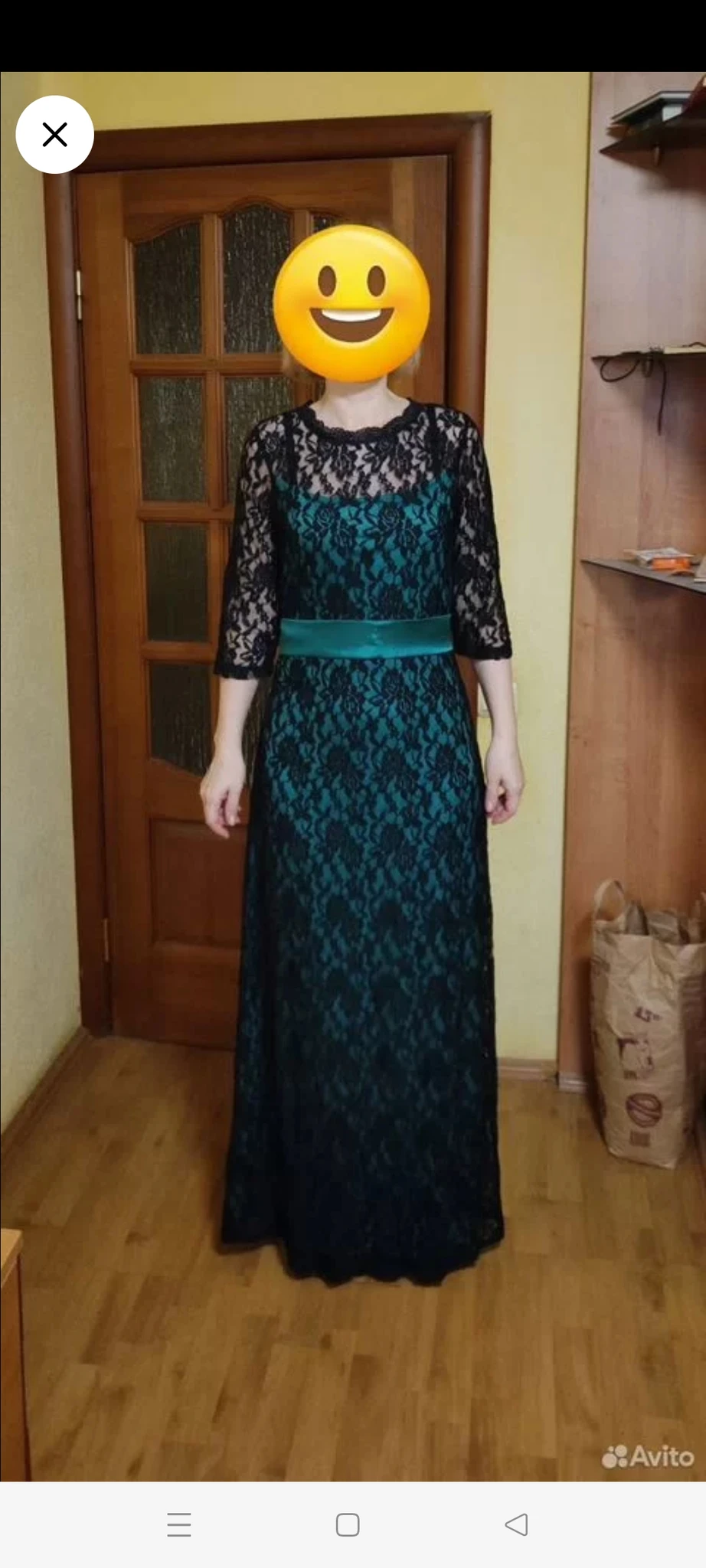 Длинное чёрное с зелёным: длина 148, ОГ 95, ОТ 75, ОБ 100. Ткань очень хорошо тянется. С поясом в комплекте