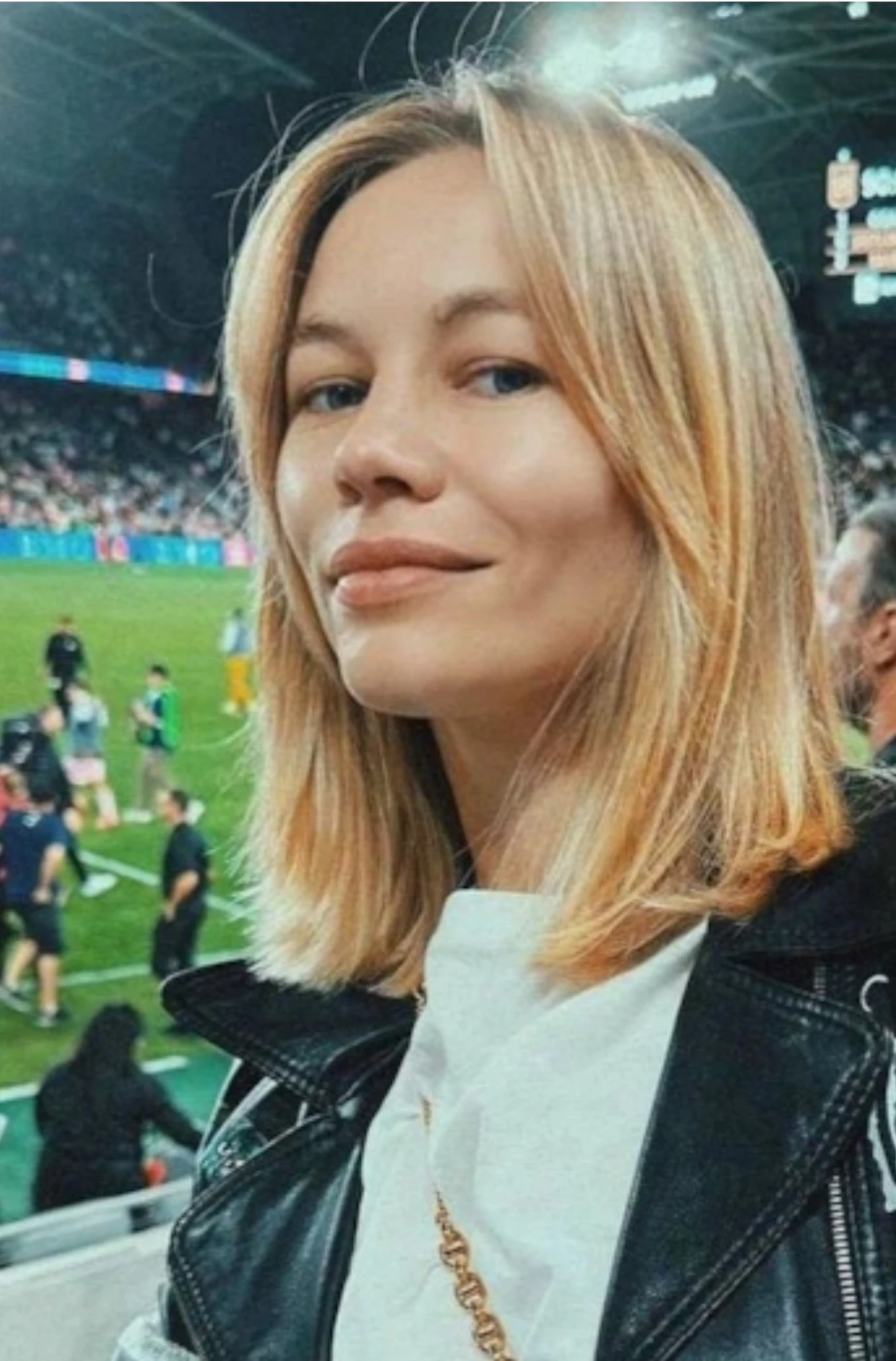 По её лицу сложно понять, что она прям счастлива. Взгляд в никуда, счастливой искренней улыбки нет